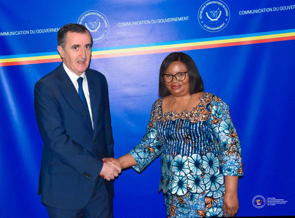 La ministre de l’Environnement, Développement Durable et de la Nouvelle Économie du Climat, Marie Nyange Ndambo, a échangé, ce jeudi 23 octobre 2025, avec l’ambassadeur de l’Union européenne en République Démocratique du Congo, Nicolas Berlanga Martinez.