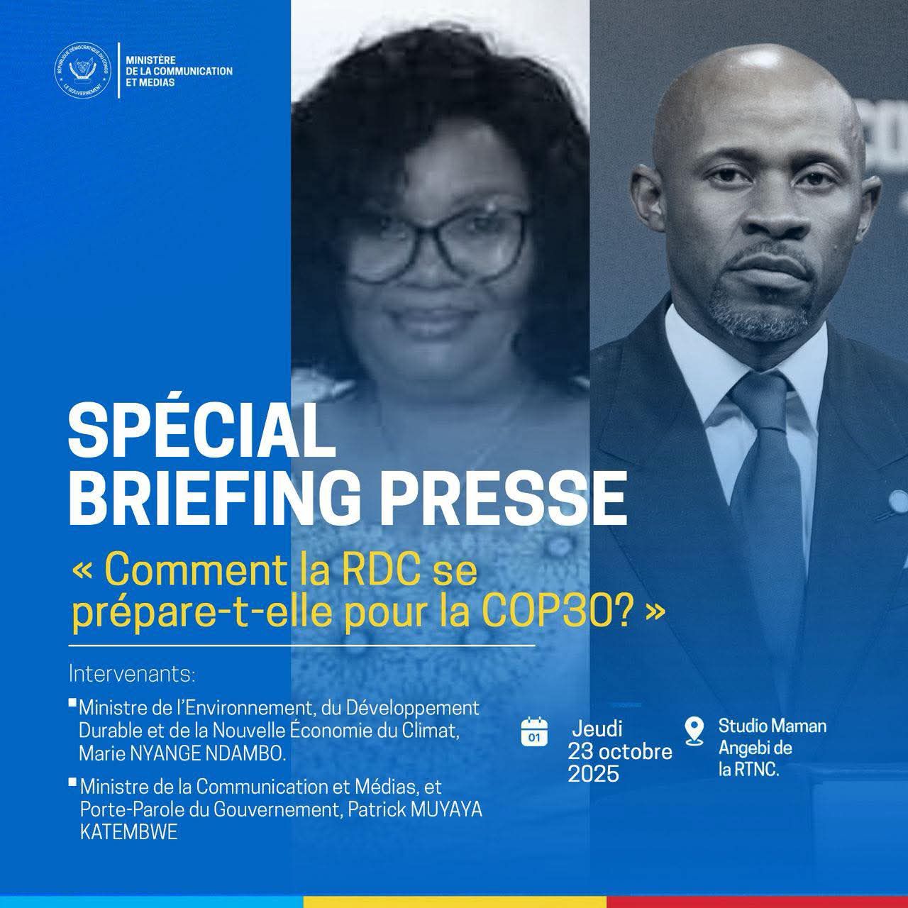 Un Briefing Presse se tiendra aujourd’hui à 17h30 autour du thème : « Comment la RDC se prépare-t-elle pour la COP30 ? »
